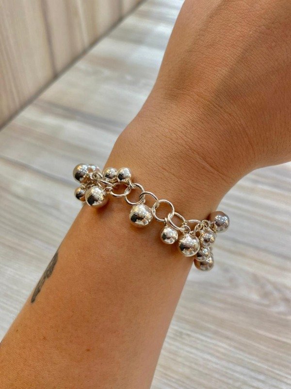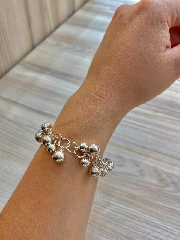 Pulsera de plata 925, con 27 bolitas medianas y chicas tambien de plata 925.