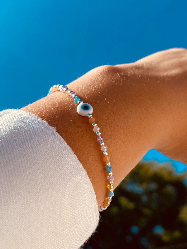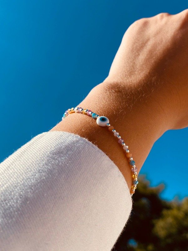 Pulsera de Plata 925 Multicolor con cristal de roca (art13)